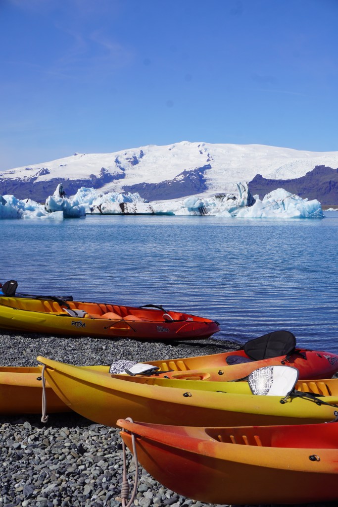 Jökulsárlón Glacier Lagoon: In the morning we back tracked 10 minutes to the lagoon where we began my favorite excursion of the trip, kayaking in Glacier Lagoon. We booked with Iceguide, who I’d highly recommend. They provide you with a full wetsuit, jackets, boots, and life jackets and a place to store your things. The water is stunningly blue and you’re given plenty of time to explore, take photos, and kayak around the floating icebergs from a safe distance. For half the price of the Kalta Ice cave tour this tour is a no brainer. I booked most of our tours at the earliest time slots so that we got to enjoy places without a big crowd, I think this was perfect for this excursion as we had no people or other tours in our photos and really got to enjoy how peaceful it is there. After our tour we explored the diamond beach and got to admire some seals sun bathing on icebergs.