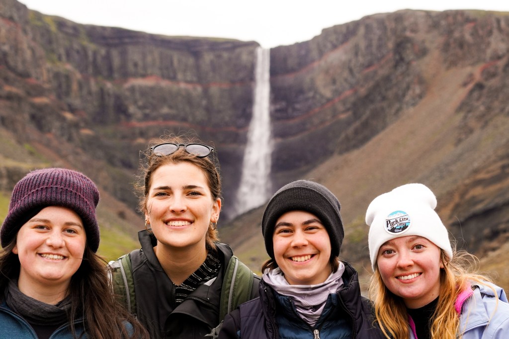 Hengifoss: itself was a highlight. The waterfall is striking, framed by dramatic basalt formations and red strata in the cliff walls. Just be warned: the hike is no joke. Budget a few hours if you want to go all the way to the base. We spent nearly three hours there and rolled into our hostel around 9 p.m.—tired, but totally worth it.