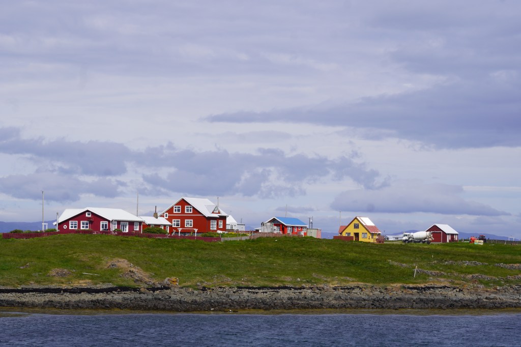 Flatey, meaning “Flat Island” (and it lives up to the name), is a small, car-free island located in Breiðafjörður Bay. Once a bustling hub for fishing and trade, today it’s a quiet haven for seabirds—and a magnet for puffin lovers. The island has just a handful of permanent residents, a charming hotel, and a few colorful houses that look like they’ve been pulled straight from a storybook. Sadly, the ferry only made a brief stop there on our route, so we didn’t get the chance to explore as we had hoped or spot puffins nesting along the cliffs. Next time, Flatey.