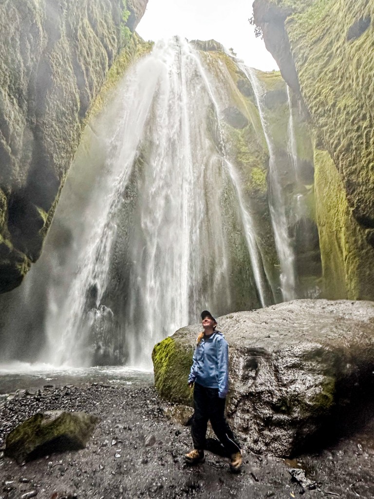 First stop, Seljalandsfoss and Gljufrabui (hidden waterfall) which are conveniently next to each other. Some people skip Gljufrabui because they don’t realize you have to actually walk into a cave to get to it. It ended up being our favorite waterfall due to its unique location, but wear your waterproof clothes for these two stops as you will be getting soaked.