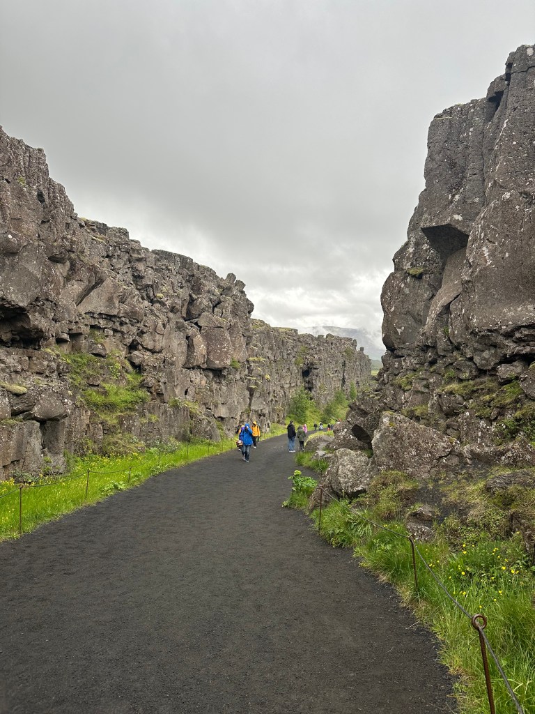 After fueling up, we set off for Þingvellir National Park, one of Iceland’s most iconic natural wonders. There, we had the surreal experience of walking between the North American and Eurasian tectonic plates. The landscape was stunning—peaceful lakes, wide open trails, and to our delight, a group of ducks and their ducklings paddling around nearby.
